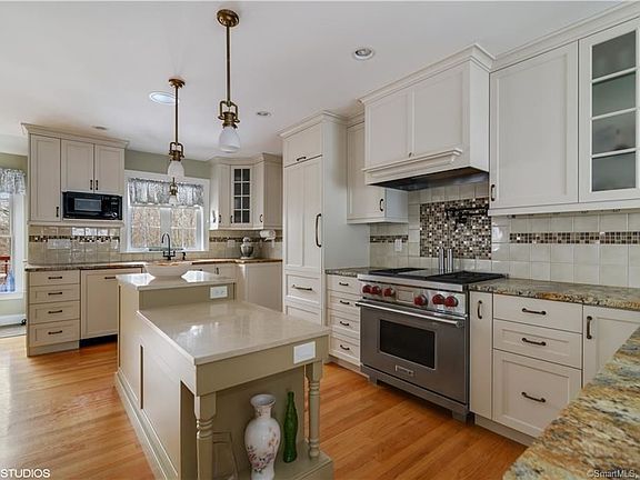 Located within walking distance to down town Mystic, restaurants, library , Seaport , marinas and Mystic River. A cooks delight this gourmet kitchen has wolf stove, sub zero refrigerator, wine cooler, warming tray, and island.