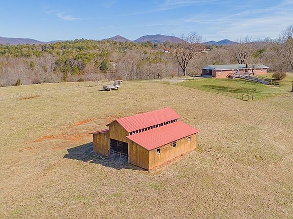 LONG RANGE MOUNTAIN VIEWS & rolling pasture from this 43-acre property w/renovated ranch home, workshop/warehouse & 5-stall barn. $60K in recent upgrades/improvements! All-brick ranch features hardwoods, granite kitchen w/SS appliances + b'fast area, dining room, family room, large bedrooms & full unfinished walkout basement. New back deck+2-car covered carport. Warehouse building (40'x80') is half enclosed & insulated/half open. Barn has 4 (12'x12') stalls+ 1 (24'x24') breeding stall & tack/feed room. Spring-fed creek runs through property; never dry. 41 fenced acres.