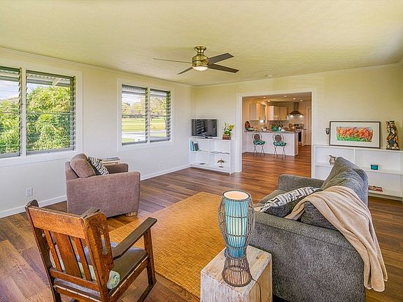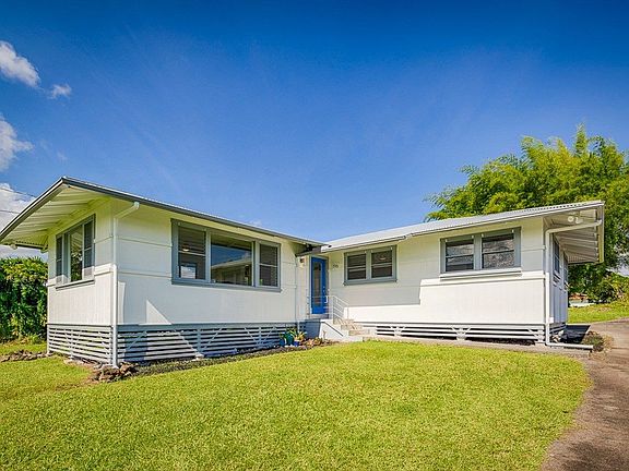 A remarkable renovated plantation home done to perfection. The home has the advantage of being at the end of a quiet street. Located next to the Municipal Golf Course, off the 14th hole. Close to Hilo Town's services, shopping, restaurants and entertainment. Larger windows have been added to the living room to give it a bright, spacious, comfortable feel. A 12' x 16' lanai has been added off the dining room and faces the golf course, where you can enjoy your morning coffee or evening cocktail. The kitchen has been enlarged and new appliances added. There is also a lighted pantry in the kitchen for added storage. A new full bathroom is now off the hall. Flooring is luxury vinyl, the home has been fully repainted inside and out, crown molding has been added to give it a very finished look. The roof is new! In the back yard you have a bonus building. Attached carport is located privately at the back of the home near the laundry space. The home was previously owned by a master gardener and there still is space for a very large garden.