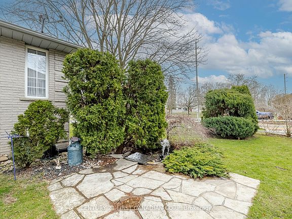 Welcome to 196 Hull Road, Strathroy. Charming Brick Ranch on Corner Lot with Room to Grow! A spacious and beautifully maintained solid brick ranch located on a premium corner lot in a desirable Strathroy neighbourhood. Offering 1,922 sq. ft. of main floor living and a fully finished lower level, this home blends classic charm with comfortable modern touches. Built in 1989 and sitting on a generous lot, this property provides ample room for families, entertainersor anyone looking for a roomy one-floor lifestyle. The main level features a large kitchen w granite countertops, solid oak cabinetry, and durable laminate flooring. A formal dining room with French doors opens into a bright and inviting family room boasting engineered hardwood, a cozy gas fireplace, and cathedral ceilings ideal for relaxing or entertaining. The main bath was beautifully remodelled in 2021 and includes a double-sink vanity & a tub/shower combo. The spacious primary bedroom features double closets and carpeting, while the second bedroom offers ample space and comfort. A third room on the main floor, currently used as a living room, could easily function as a third bedroom. A convenient 2-piece bath, laundry room, and back closet complete the main level. The expansive lower level offers a large family/rec room with a bar area, perfect for a pool table or shuffleboard. Two additional bedrooms with large windows and laminate flooring, a 3-piece bathroom, and generous storage space round out the basement level. Outside, enjoy your fenced backyard oasis featuring a 20 x 20 patio, water fountain, cedar trees, awning, and a storage shed. A full sprinkler system and sandpoint add convenience to outdoor maintenance. Additional features include: 2-car garage with epoxy floor, 4-car interlocking brick driveway, central vac, alarm system and 100-amp breaker panel.This meticulously cared-for home is move-in ready with incredible potential. Don't miss your chance to own this rare gem in a prime location.