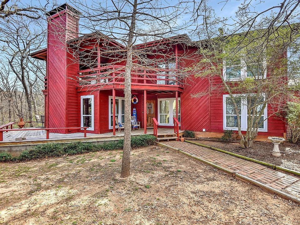 This home is like an old friend welcoming you to come and sit a while. In the living area the warm Oak walls are punctuated by handsome rock wood burning fireplace. crafted ceiling beams and many windows and French doors that bring in the mid view of the mature trees. Its like living in a tree house. Upstairs French doors lead to a covered deck with seasonal view of the Lake. Making this home special is its location at a dead end street with no through traffic offering quite and seclusion. The living and dining areas provide a nice flow with the Kitchen delineated by a breakfast bar. Each of the 3 bedrooms has its ensuite bathroom. Desirable hard flooring is throughout, Oversized, freestanding garage also has space for storage and shop purposes. Enjoy the beautiful sunrises and sunsets. This home has the patina of love created by the owners of 36 Years. Now is the time to pass this delight on to new ones.