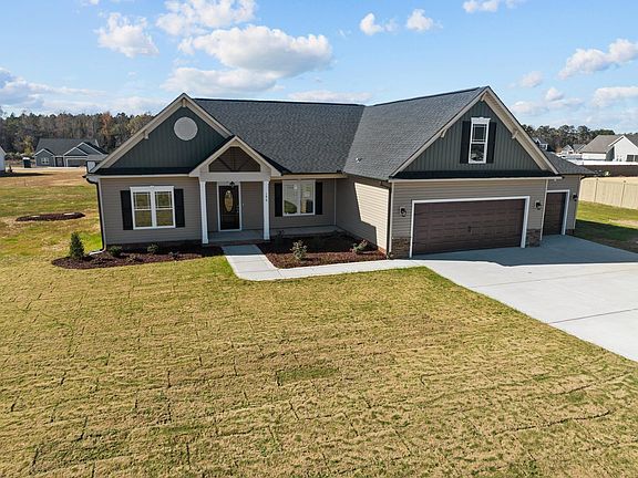 Amazing Cumberland Home located within minutes of Campbell University in the South Creek Community! 3 bedroom, 2 bathroom ranch floor plan with 3-car Garage! Gorgeous flooring throughout main living areas. Open Concept Living with beautiful kitchen equipped with stainless appliances, quartz counters, large island with seating and breakfast nook. Dining area with wainscoting and trey ceiling. Beautiful living room with wood beams on ceiling and gas log fire place. Wonderful upgraded features throughout home. Large master bedroom with tray ceiling and a beautiful ensuite featuring large bathtub and a gorgeous tiled shower. 2 spacious bedrooms on first floor. Large bonus area upstairs. Covered porch overlooking a beautiful large lot on .58 acres!*Fence being installed!*