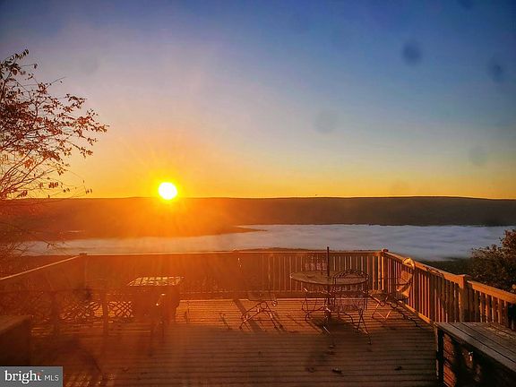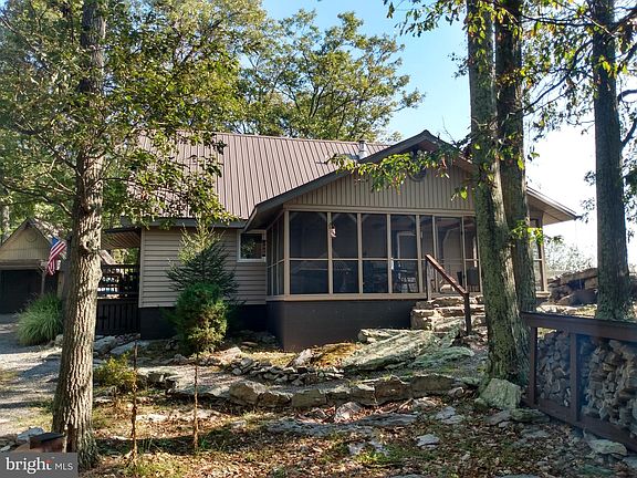 An Eagles View! If you have been searching for a Spectacular View here it is! What a fantastic way to start your day with this east, south easterly vista, the sun will peak over the Cacapon Mountain to greet you, and the ever changing conditions will always provide a fresh picture of the area for your enjoyment. This well kept 3 bedroom 1.5 bath Chalet is ready now and offers a recent metal roof, central air and heat, main floor laundry, insulated windows, and insulated siding. A woodstove and high natural pine ceiling give a nice warm effect on the interior. The huge window wall allows you to take in the view without stepping outside but if you do, then the Trex front deck will provide such a vantage point you'll feel as if you're floating on air! The screened side porch is always nice for relaxing and taking in the local wildlife. If you just want to sit on a covered front porch it has one of those too! The outdoor area doesn't go without the niceties either, this property has over 8 acres of beautiful WV mountain land improved with a very well built 1 car garage with electric and a high pitched roof that's handy for storage, outdoor stone oven, stone fountain and garden areas, but the natural stone formations will blow you away! Near both the Cacapon and Potomac rivers and the Wildlife Management Area for all your extended outdoor activities, and Berkeley Springs for restaurants, shopping, spas and entertainment. This is one property you'll want to see now before it's too late! Professional Photos On The Way!