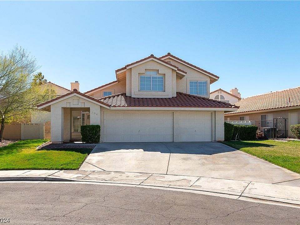 Welcome to an updated 3 bedroom 2.5 bath two story home in the heart of Green Valley on a quiet cul-de-sac. Open the front door to an impressive open & bright home with vaulted ceilings. Open floor plan connects the kitchen to the living areas. Granite countertops and updated cabinets throughout with roll out drawers in the kitchen. Family room boosts a contemporary electric fireplace. All appliances included. Primary bath has separate tub/shower, dual sinks, walk in closet. Remodel includes 5" baseboard throughout with neutral two tone paint, updated LED lighting and new carpeting in the bedrooms. Remaining floors are wood laminate and tile. Ceiling fans in the bedrooms and the family room. There is lots of storage in the 3 car garage with built in shelves. Easy walk around the block to Hillpointe Park. New roof in 2008, new water heater 2023. Great location: close to Pittman Wash Trail, The District, schools, shopping & dining. Easy access to the I-215 and the airport.