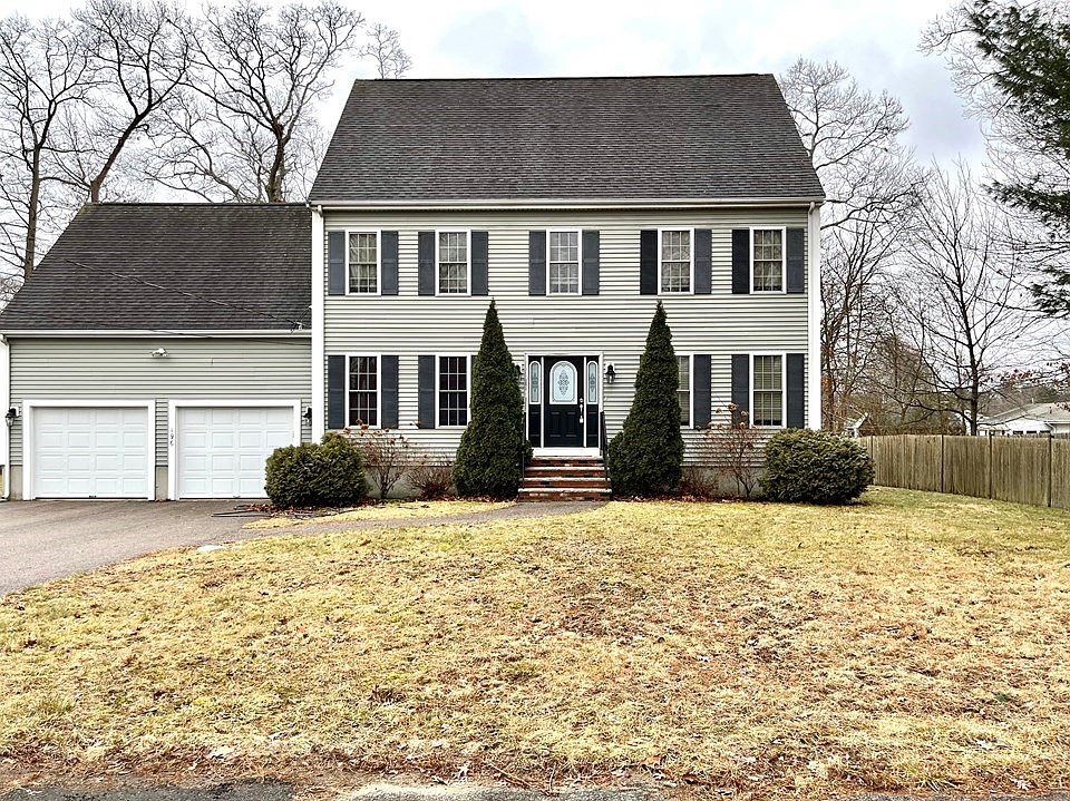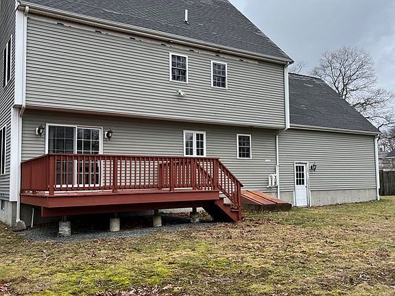 This is a beautiful home nestled on the very end of a dead-end street. It is 14 Years young with a beautiful front yard and a large and fenced back yard with lots of privacy and a deck for entertaining., This home was just completely repainted in the entire interior It features hard wood flooring throughout the first floor, brand new wall to wall carpets upstairs, a cherry kitchen, center island for more counter space for those who love to cook. . There is a first-floor laundry and a full bath. . Moving up to the second floor it features a spacious main bedroom with a walk-in closet double vanity and jacuzzi tub. There are also 2 other generous sized bedrooms. This home also offers a walkup attic and an unfinished room over garage with the potential for a great room or another large bedroom suite. This home is located on the S Easton side, West Bridgewater side, minutes to commuter rail and route 24. Front door exterior trim will be repainted as soon as weather permits.
