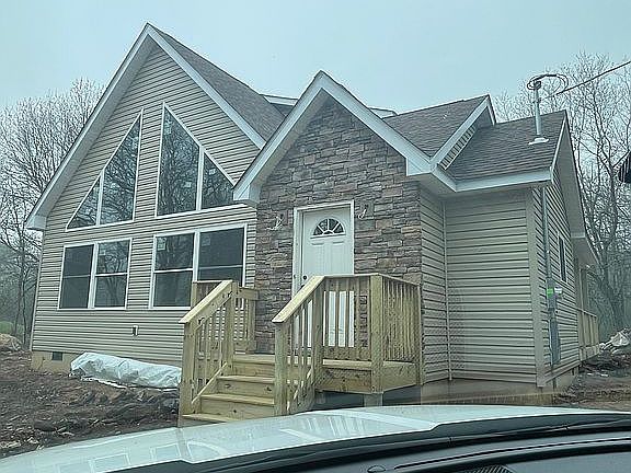 Classic Pocono Chalet Style with master bedroom and loft on second floor within a Lake Community and very private setting