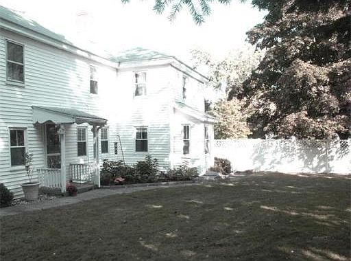 Farmhouse oasis in town, with short to school, train, and restaurants! Multiple work from home options in this three bedroom antique colonial on large, level lot. Newly 2021 updated kitchen combines new appliances, cabinets, & counters with a beautiful original beamed ceiling. Master bedroom suite with large walk in closet, laundry, full bath, and fireplace, and french doors to backyard. 2 additional bedrooms on 2nd floor. Full bath on first floor, fireplaced living room and dining room. Additional first floor room with separate entrance, for as office, bedroom, etc. High efficiency gas furnace. Private backyard with raised beds, blueberry/lilacs, 2-car garage, and powered shed for additional office/workshop space.