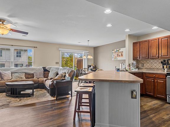 End unit townhome features 3 bedrooms, 2.5 baths. Landscaping, lawn care and exterior maintenance taken care of for you, just move in and relax! Breakfast bar and dining area are open to the living room, great for entertaining.  Enjoy the spacious primary bedroom which has vaulted ceilings along with large walk-in closet and primary bathroom. Laundry on second floor. Garage is finished with shelving. Open space in front of home gives more of a private feel. Luxury vinyl plank flooring and new paint brings this home the perfect touch for your pleasure.