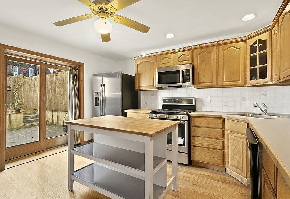 Townhouse living can be yours in this HUGE 3 bedroom, 2 full bath home a mere half block away from McGolrick park. The grand main room offers ample space for a dining room and a parlor set up by the charming decorative fireplace. The kitchen is a dream for everyday life and for entertaining guests with stainless steel appliances and a dishwasher. The two windowed doors open out to the gorgeous slate patio and your very own backyard oasis complete with a trellis covered bench and a lawn, a gardener and outdoor griller's dream. The first floor has a queen sized bedroom that could also be used as an office and a full bath. Upstairs are two of the largest bedrooms in Greenpoint, each big enough for a California King. The first bedroom overlooks the garden, offers dual closets as well as a decorative fireplace. The front bedroom is massive and has tons of built in storage, and gorgeous light from the bay windows complete with a window seat just made for curling up with a book on. The upstairs has a full bath with tub and an ample linen closet. The unit also has use of the basement for additional starage needs, enough room for a home workshop and a full sized washer and dryer. If you have been craving space, the search ends here. The neighborhood is thriving with so many fantastic restaurants and cafes. Some of our favorites are Selamat Pagi, Greenpoint Fish and Lobster, Little Dokebi, Champion Coffee, Dar 525, Crema, Moe's Doughs, Enid's, Goldie's and Jimbo Slim's. Call, email or text for a showing today!