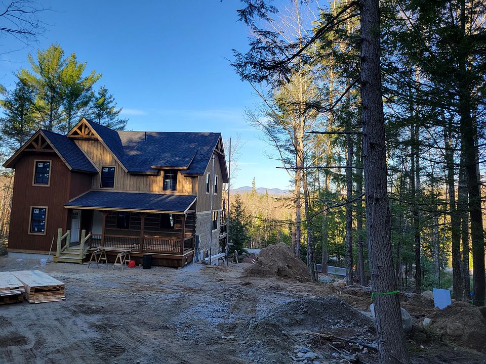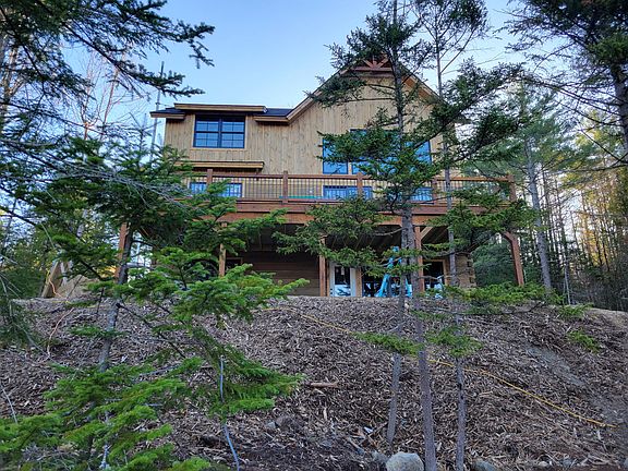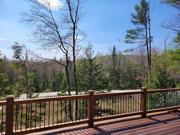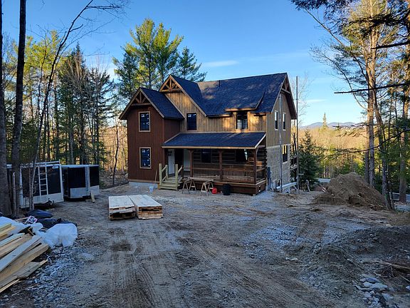 This new construction custom home in Bethel, has great views of the surrounding hills and the Mount Washington Valley, with luxurious accommodations. The exterior of the house has a rustic, western mountain feel, with squared chinked log, board and batten and ''weathered'' metal siding. There are five bedrooms and 3 and ½ baths. The open living floor plan has a gourmet kitchen with Bosch appliances and rustic hickory cabinets with granite counters. The great room has beamed ceilings that are over twenty feet in height. There is a wet bar and a stone fireplace. This area is ideal for entertaining. The ski room has its own exit to the outside so you won't need to bring equipment and snowy boots into the main foyer. A grand open staircase leads up to a balcony, connecting two bedrooms + bath, and the master suite with en-suite bath. The lower level has a large living area that will accommodate a TV sitting area plus room for a pool/ ping pong table. This level also has two additional guest rooms and a full bath. The house is wired for both a hot tub and EV charging station. An expansive deck and covered porch make this spectacular house a four-season oasis.
