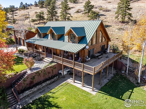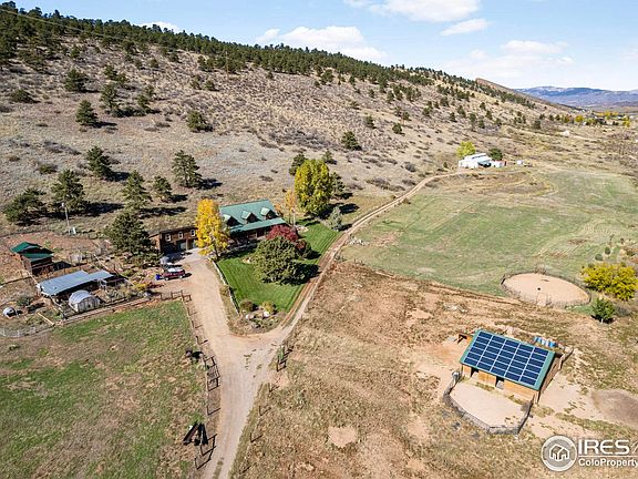 Discover the perfect blend of Colorado charm and wide-open freedom in this stunning log home on 40 acres just west of Loveland. With 4,317 total square feet, this property offers the space, privacy, and versatility you've been looking for, and just a 15-minute drive to downtown Loveland.Inside, you'll find a warm, inviting log interior with 3 bedrooms and 3 bathrooms on the main levels, plus a partially finished basement with two additional bedrooms and another bath. The open-concept living areas feature rustic finishes, abundant natural light, and unbeatable views of the foothills. For horse enthusiasts, this is a dream setup. The stable includes four 12x12 stalls with automatic waterers, turnouts, hay storage, a riding arena, and a two-section pasture for grazing and rotation. There's also a large shop building, currently used as a workshop, that could easily be converted into an additional barn or equipment storage. The property also features a fenced garden area, a chicken coop, and a separate fenced space for other animals. The PV solar setup provides significant energy, and is owned outright.