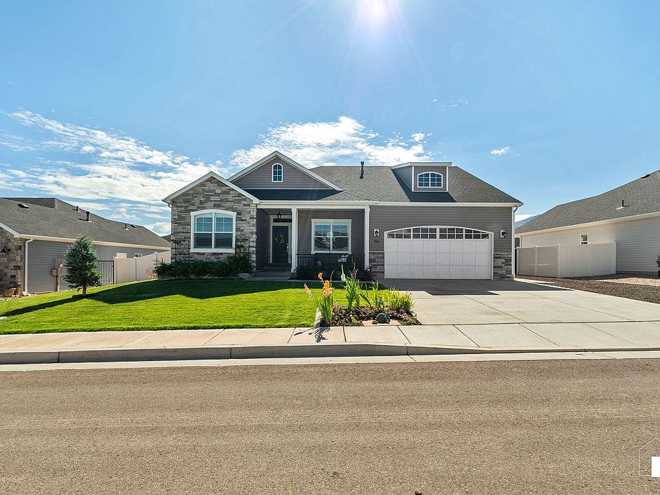 Immaculate, better than new home! Step inside & you'll find so much to love! Beautiful custom soft close cabinets with extra cabinetry in the office, great room, & laundry room. Quartz countertops, kitchen island with farm sink, subway tile backsplash, plantation shutters, large corner pantry with 2nd hallway pantry, upgraded laminate floors throughout with warranty, & upgraded lighting & electrical package. Master suite with double vanity & extra-large walk-in closet. As a bonus, the barn door in the hall gives your guest their own private suite! Fully landscaped & fenced yard, RV parking, & unfinished basement to expand. Relax in the shade under the covered back deck & patio or take in the stunning sunset views from your covered front porch.