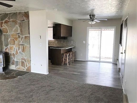 3 bedroom 2 bath ranch style home in a nice neighborhood, conveniently located close to downtown Rigby and schools. One level for easy living. Home has a large living room with a freestanding gas stove that does a great job at keeping the home warm throughout the winter! Kitchen is a nice size with lots of counter space, eat at bar, a built in pantry, and all appliances are included. Just outside the dining area sliding door is a large covered patio for awesome entertaining! Laundry room just off of the kitchen has access to the backyard as well. The master bedroom has a big closet and 3/4 bath. Home features 2 more large bedrooms and a large main bathroom. Home has new laminate flooring and carpet throughout.The attached 2 car garage is fully insulated and sheet rocked. Nice size corner lot has sprinkler system and mature trees.