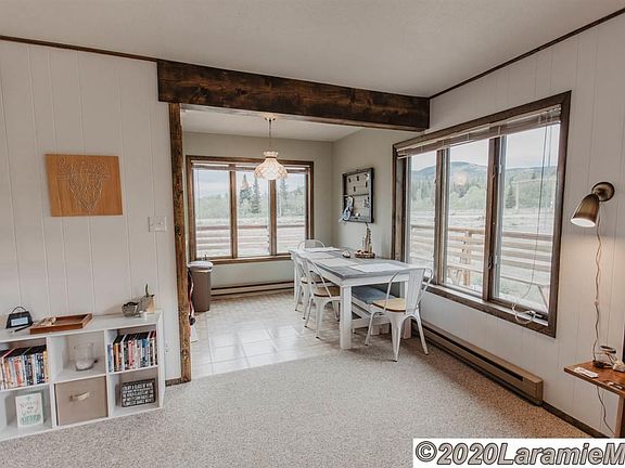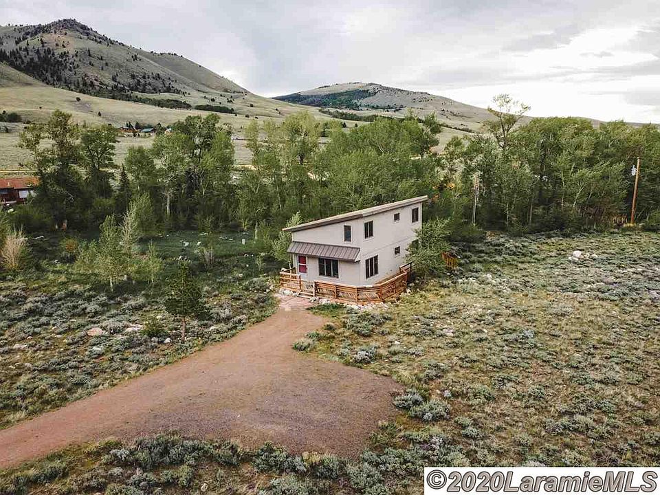 Located just minutes from historic Centennial Wyoming, this home has the perfect location with panoramic mountain views and an endless big sky that makes you feel like you are on top of the world! ...and you are, with 3 bedrooms and 1.5 bathrooms. This home is clean and bright with a natural wood deck that gives you a view of most of the 2.18 acre property. On the main level there is an eat in kitchen full bathroom and bedroom! Upstairs you will find 2 cozy bedrooms and a half bathroom with great storage! offers great natural light along with an a great view!