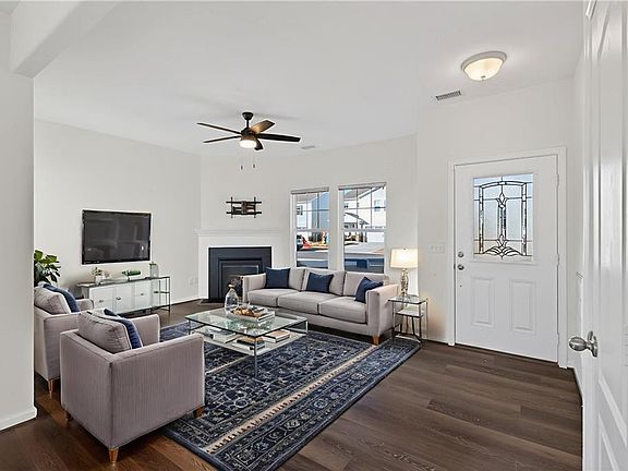 Discover this beautifully updated open-concept home offering 3 bedrooms and 2.5 bathrooms in the heart of Suffolk. The spacious family room flows into a modern kitchen featuring granite countertops, stainless steel appliances, recessed lighting, and a large walk-in pantry—perfect for everyday living and entertaining. The primary suite includes a luxurious bathroom with dual shower heads and floating vanities. Additional highlights include a utility room with cabinetry and washer/dryer hookups, scuttle attic access, and a screened-in porch you can enjoy year-round. Ideally located near top-rated restaurants, major interstates, and the hospital, this home combines comfort, convenience, and style. Also, there is a fireplace that is upgraded for this model.