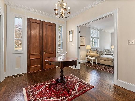 DOWNTOWN location in the historic Lincoln District. Originally built as the Meeting House in 1829. 5 BEDROOMS, 3 FULL baths and over 5.300 sq feet. Recent updates include 2 NEW bathrooms, NEW gas boiler, NEW carpets, exterior and interior painting, NEW irrigation system, brick walkway, updated granite & stainless kitchen and more. Step into foyer with grand staircase, high ceilings & custom crown molding.Recently refinished hardwood floors throughout. NEW hardwood floors installed on 2nd fl. Family room with fireplace and custom built- ins leads to maintenance free deck with NEW awning, fenced in yard and storage shed. Mudroom off kitchen with plenty of storage.Spacious master suite with large walk in closet & sitting area. All bedrooms are generously sized with double closets. 2nd fl laundry.Central A/C. Home office. All this historic charm with modern conveniences in the heart of Hingham Sq.Walk to train, restaurants, shops and Hingham Harbor. Ferry/ Hingham Shipyard 5 min away.