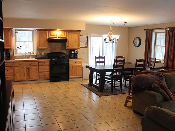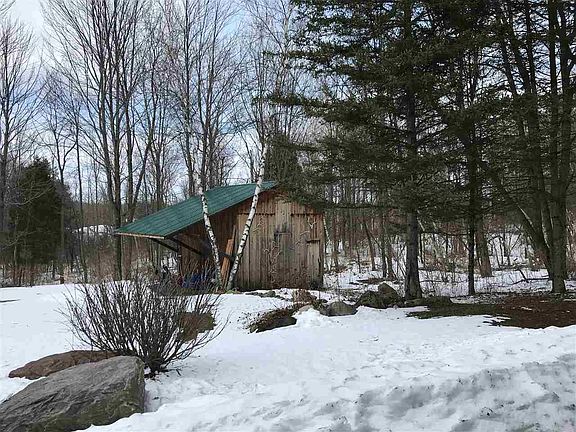 Conveniently located between Potsdam and Canton, this charming home is bright and cheery, and has been meticulously maintained. Set back from the road on 9.8-acres of meadow and woods, this home features a spacious great room with living, dining and kitchen. An elegant bookcase serves as a focal point here, as does the cozy pellet stove in the dining area. In-floor radiant heat keeps the tile floor warm. The master bedroom is on the first floor, along with a full bath and a laundry room/pantry and a utility area. Upstairs are two bedrooms and a bathroom with shower. Outside, a front porch runs across the house, and a roomy outbuilding provides storage. There are trails through the woods and a large, fenced garden area with berries and garden beds.