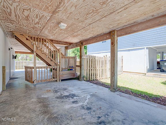 Live the beach lifestyle in this cute beach cottage on a corner lot in Olde Mariners Subdivision. Close to the Carolina Beach state park, town recreation center, shopping, restaurants, breweries, frisbee golf, playground, skatepark, and more... Brand new just installed LVP flooring, new Fortified Roof in Oct 2020, freshly painted interior, quartz countertops in kitchen, and other recent upgrades. Spacious covered deck/front porch and large covered carport/Lanai for outdoor living with TV and access to back yard. 3 Bedrooms, 2 full baths, vaulted ceilings in living room, ceiling fans in living and bedrooms. Interior stairs and large area downstairs offer a great opportunity to enclose for additional room. Lots of potential to make this your beach getaway! Short term rentals not allowed.