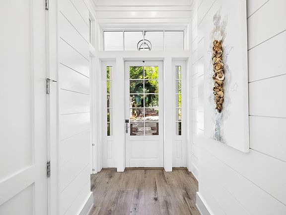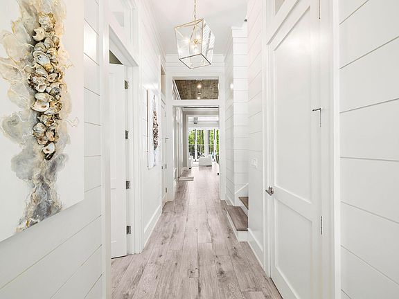 Modern elegance meets tranquility at this private luxurious retreat nestled between the pines in the heart of Watercolor. With Wood Fern Park and Camp Watercolor to the east and a wooded nature trail immediately to the south and west, this Gregory Jazayeri designed six bedroom, six full bath residence constructed by Borges Brooks Builders has privacy rarely found in Watercolor. Upon entering the home, guests are welcomed by soaring 12-foot ceilings and a professionally decorated interior. A guest bedroom with ensuite and a well-appointed laundry room are located off of the main entry, with a hallway leading to the open concept kitchen, living, and dining area. A Pecky cypress ceiling, Sub-zero and Wolf appliances, lighted open shelving with custom tile, and quartz countertops including a grand 11 foot waterfall island complete this chef's dream kitchen. In the living and dining room, a gas fireplace, ceiling with exposed wooden beams, and bifold accordion glass doors create a perfect transition from the modern interior of the home to the peaceful setting found on the idyllic outdoor back deck with a heated pool overlooking the wooded nature trail.