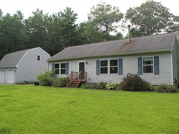 Privacy and almost 9 acres! Come see this move in ready updated one level living ranch. Some of the updates include a newly partially paved driveway, bamboo flooring, and a large finished basement. You will also find central AC, an oversized 2 car garage with a room above and open level private back yard. Open floor plan adds to the overall feeling you get in this 3 bedroom 2 bath house. Sliders off the dining room get you to a large deck and the beautiful yard. This house is just waiting for a new owner.