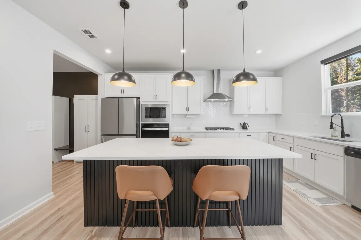 - Features: Cabinets White, Eat-in Kitchen, Kitchen Island, Breakfast Bar, Pantry, Other Surface Counters, View to Family Room