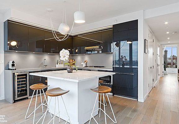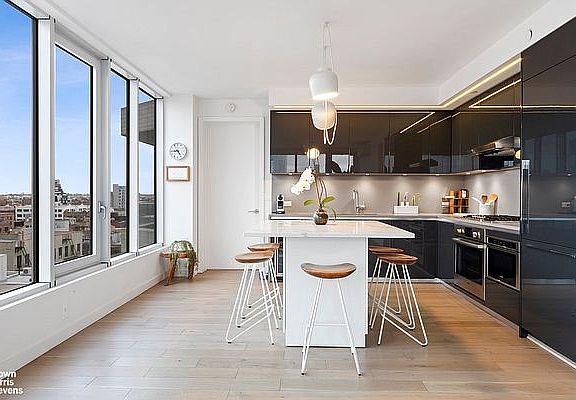 3bd 2ba Luxury in the Sky This is why you live in Williamsburg! Breathtaking views from 3 exposures of floor to ceiling windows, 3 bedrooms and 2 bathrooms, 2 private balconies, included free indoor garage parking, 24-hour gym, rooftop garden with grills and playground, individual storage, doorperson, and the perfect location make this the perfect apartment. One of the showpieces within this apartment is the high-end kitchen with ample storage space within custom Italian lacquer cabinets, Bosh appliances, an under mount sink in the Caesarstone counter top, and it is finished off with a custom designed center island that has additional storage underneath and comfortably seats 8 people: no need to bring your dining table here! The open Kitchen/dining/living plan boasts full walls of windows on two sides creating a backdrop of the city skyline and river views that makes for a truly dramatic space. There is a private balcony off the living space with the same city views that is large enough to accommodate a lounge area or an additional dining area. The primary bedroom has corner exposures, once again with two full walls of windows and its own private balcony. Attached to this bedroom is a dressing room that leads to the en-suite bathroom, both with a full wall of windows for more wow factor. Two more true bedrooms are here, both accommodating a bedroom set and work/office space, and of course full height windows for the views! Also included in the apartment is in unit washer/dryer, heating/cooling individually controlled for each room, automatic blinds for the windows, and the possibility of being provided furnished if needed (at an additional cost.) The location could not be better with 5 Michelin rated restaurants within one block and many others very close, immediate access to the L train and also the J and Z trains, the ferry to Manhattan, and just 4 blocks to the new Domino Park along the water. Available immediately, no smoking, pets on approval.