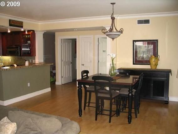 Fantastic New Price!Contemporary one level Sellwood condo. Steps to park, river, Sellwood shopping. Coveted NE corner unit. Very well layed out, 1 level floor plan, classy kitchen. Tall ceilings, warm earthy paint, hg private wndws, gas frpl w/ fabulous built-ins, A/C. Under-building garage parking. Secure building w/ elevator & awesome party room.