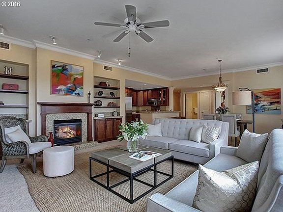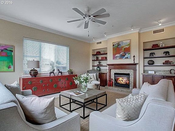 Open Sunday 1-4pm. Gorgeous one level condo on the Willamette River. Open and light corner unit with great room concept, two sliders that open to Juliette Balconies with views of park, river, west hills and seasonal downtown views, gas fireplace and built-ins. Beautiful attention to detail throughout. Wonderful open kitchen with eating bar, granite counter-tops & stainless steel appliances. 2 parking spaces. Walk to shops and resturants