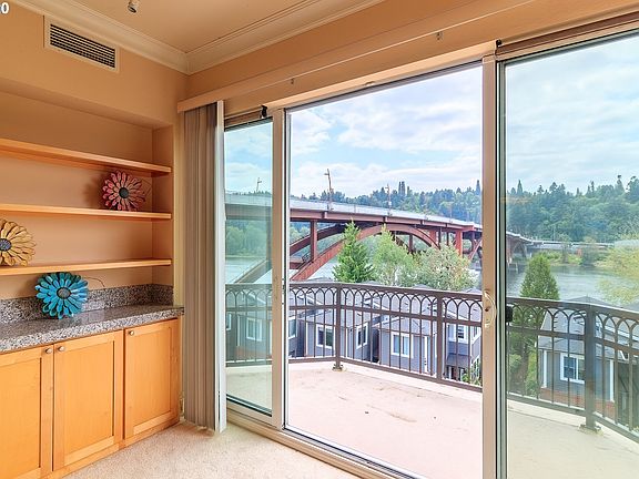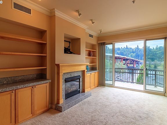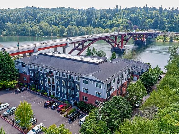 Watch the Christmas ships this Dec!River and Sellwood Bridge views from this TOP floor condo!Open floor plan with balcony and fireplace in the living area. 2 bed/2 full bths. Large kitchen space with granite and stainless steel ap. Laundry in unit! Washer/Dryer included. Move in ready! Includes 2 parking spaces! 1/garage, 1/parking lot, and large storage unit. Community party/rec room with kitchen and patio on the main level. Assessment will be paid at closing. By Oaks Park/Springwater trail!