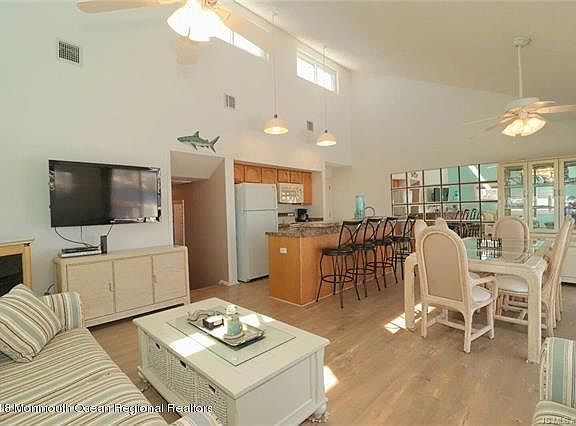 Not too often do we have a home in Village Harbor ''The Coves'' come to the market on a Cul-de-sac over looking a large intersection of several lagoons. This is THE PRIME spot to sit out on your private deck at sunset and watch all the sailboats and boaters come in. My Clients fell in love with this property the moment they saw it and you will too! The home offers an open floor plan with cathedral ceilings, water views from the 2 sliders and unobstructed views from the living room. A perfect home for entertaining your guest both inside and out! The fenced in property is large enough to extend or even add in an in-ground pool, firepit, outdoor kitchen or whatever your heart desires. There's even an outdoor shower! We all fear the the cost of replacing a bulkhead but no need to