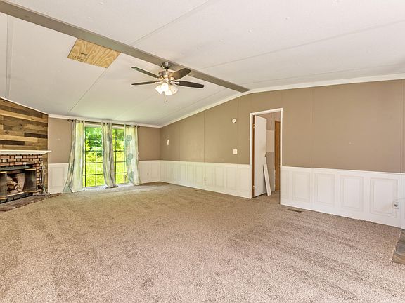 Want privacy? Check out this double-wide located on approximately 5 acres and hidden away. The home has 3 beds and 2 baths, kitchen, living and laundry room. HVAC is brand new and the detached garage is a great get-away, wired for TV with 3 roll-up doors (1 X 12' and 2 X 8') and a single walk through door. The Garage also has a 9,000 lb. lift with plenty of room to work. There is also another large storage building on the property. Call today and set up your showing.