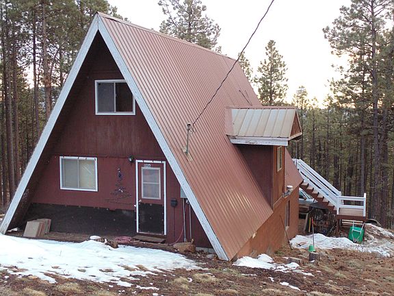 This is a darling A frame home on one very private acre. Just remodeled to include new granite counter tops, new upstairs carpet, engineered flooring on main floor, new bath vanity and bath fixtures, new windows, new entry doors and hardware, new garage door. The deck has been completely refurbished, the propane forced air furnace just serviced by CalSteel. There is a natural gas hookup to the home, with the tap paid (the meter has not been set, and hookup to the home not completed)There is a newer woodstove, with fan on the main floor that will keep the whole place toasty. There is an attached 2 car garage. Some furnishings will be included. The property has good views, and is located next to one of FLMD's large water storage tanks- which provides great privacy.
