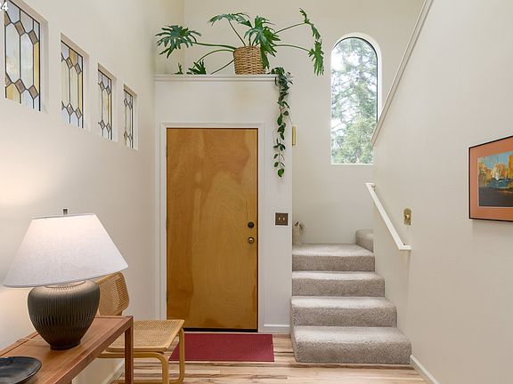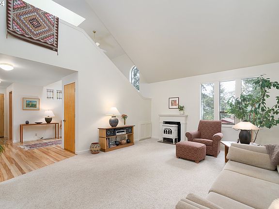Serene home nestled in South Hills of Eugene. High vaulted ceilings with numerous large windows & two outdoor decks amplify the natural setting of this home. This 4 bed, 3 bath home with dual living capabilities, offers over 2000 SqFt of finished living space and tasteful updates throughout. The kitchen features Pecan hardwood floors, SS appliances, honed granite counters, Maple cabinets & pantry with pull outs. High vaulted ceilings in the living room combined with the Jotul gas stove create a cozy feel that looks onto the beautifully landscaped back yard. Tasteful accents like custom stained glass windows can be found throughout the home. Nicely updated bathroom with walk in Travertine tile shower on the main floor. The 4th Bedroom could be an apartment. It has separate staircase access from outside & access to shared laundry. It also has a kitchenette area with/ sink, cabinets & daylight door to private upper deck. There is a full bathroom & one bedroom with vaulted ceilings, skylights & a closet. The garage is a 2 bay, one bay is extra deep for storage or shop space. The low maintenance backyard is full of mature plants & is partially fenced. Close proximity to Wayne Morse Ranch, shopping, hiking trails & more.