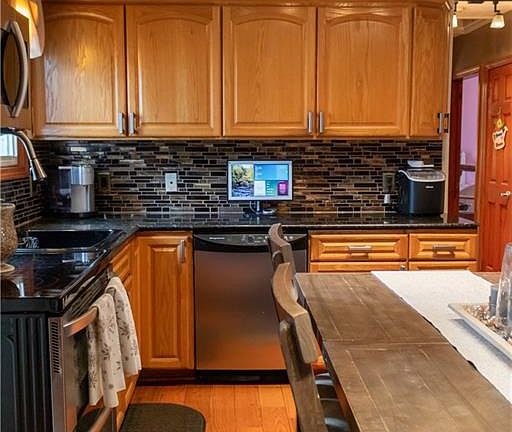 Experience refined living in this meticulously maintained ranch-style residence. Step into a world of comfort and elegance with an updated bathroom, showcasing a modern design. The heart of the home lies in the kitchen, adorned with beautiful wooden cabinets, creating a warm and inviting atmosphere. Venture downstairs to the finished basement, offering versatile space for recreation or relaxation. Some handicap accessibility features make this a functional space for anyone needing the comfort of widened doorways, ramps or a harness system. This home comes with an additional lot that reaches all the way to Model Ave, creating an extra-large backyard space for entertainment and play. Don't miss the opportunity to call this gem yours.