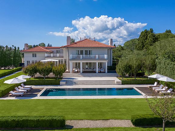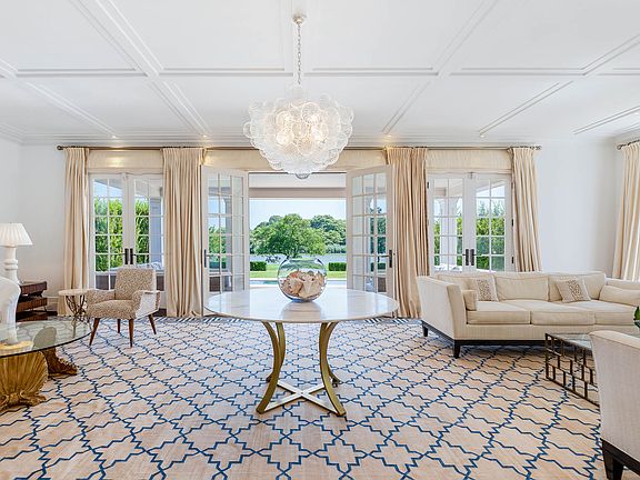 of living space with 8 bedrooms, 9 full and 2 half bathrooms, as well as a waterside heated gunite pool, a third level rooftop deck with ocean views, gated entry, and an attached 3-car garage.Natural light floods every room through floor to ceiling windows and French doors that lead to abundant outdoor spaces facing the water. Upon entering the opulent entrance hall, the water views glisten through the French doors in the living room at the end of an elongated hallway, greeting you as soon as you open the door. Positioned directly off of the entrance hall is a study, powder room, and coat closet.The living room is the heart of the home with herringbone wood floors and an elegant wood-burning fireplace with a stone surround. Three sets of French doors lead to an outdoor dining area overlooking the heated gunite pool and the tranquil waters of Old Town Pond.As you continue along the impressive hall, enter the drawing room. With charming built-in bookshelves and coffered ceilings, the room is perfect for relaxing or entertaining guests. Merge the outdoors with the indoors by opening the four sets of French doors that lead outside to a dining area with water views.Accessed through a pocket door from the formal dining room, the eat-in kitchen is styled with marble countertops and backsplash, a large center island, and dual sinks. The space is equipped with top-of-the-line appliances, such as a Viking stove, hood, double wall ovens, and wine cooler; a sub-zero refrigerator; and a Miele dishwasher. Sit by the wood-burning fireplace in the breakfast area with views of the water and French doors that open to a patio. A sitting room and guest suite are conveniently located off of the kitchen with a separate entrance through the attached 3-car garage.Completing the first level is a well-appointed junior master suite with a fireplace and two sets of French doors leading to a private outdoor terrace.Light pours onto the grand second level landing from a skylight. Double doors open to the primary suite with a sitting area, fireplace, and two sets of French doors that lead to a private terrace with incomparable water views. The first primary bathroom has a freestanding tub by Waterworks, a glass-enclosed shower with rain head, a water closet, and a dressing room, while the other has a shower, dressing room, and walk-in closet.With five additional bedrooms on the second level, the residence offers spacious quarters for family and guests. Adjacent to the master is a guest suite with a waterfront balcony with outdoor seating. There are two more guest suites accessed off of the second level landing, as well as two guest/staff bedrooms with a shared bathroom located in the southern wing of the residence. The finished lower level of the home is a place for relaxation and rejuvenation. Cozy up in the movie theatre that has a built-in projector, play billiards in the recreational room, or exercise in the gym with an attached sauna, massage room, and full bathroom with a steam shower. The lower level also features a meditation room, lounge, wine cellar, laundry room, and powder room.Outside, beautifully designed gardens and landscaping were brought to life by a world-renowned landscape designer. Multiple terraces and patios provide al-fresco dining and entertaining and are perfectly positioned alongside the waterside heated gunite pool and lawn.Epitomizing the very best in Hamptons waterfront living, this coveted Southampton estate boasts incredible water views, grand-scale living, and a highly desirable location.