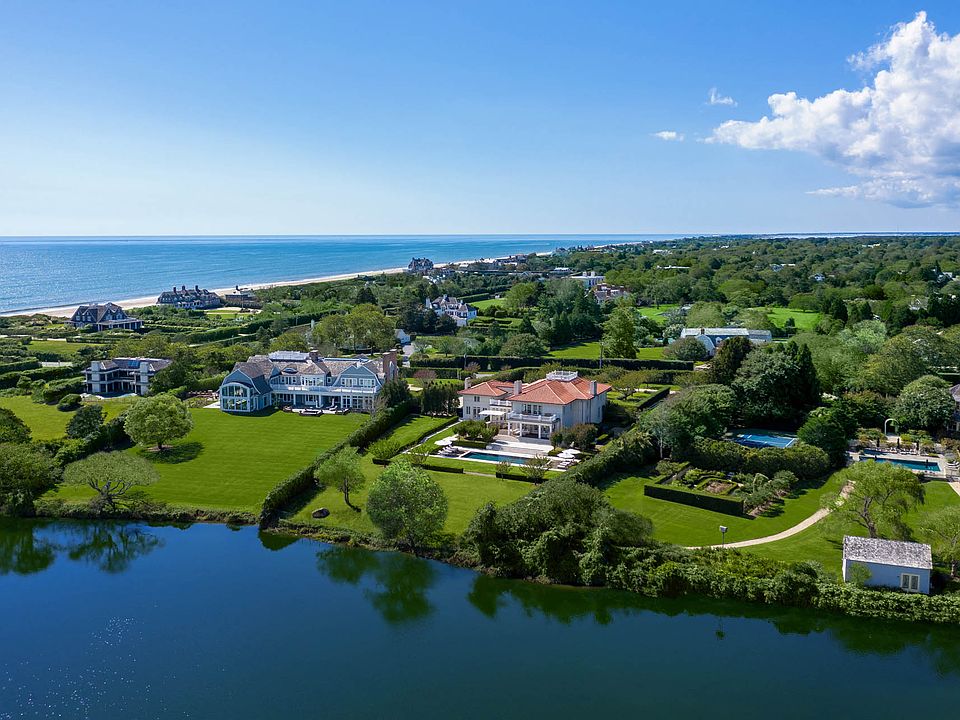 to the Hamptons' finest beaches. Set on 2 private acres, this expansive waterfront retreat offers 120 feet of water frontage on Old Town Pond with magnificent pond and ocean views and stunning waterfront sunrises.The residence features 14,000 SF