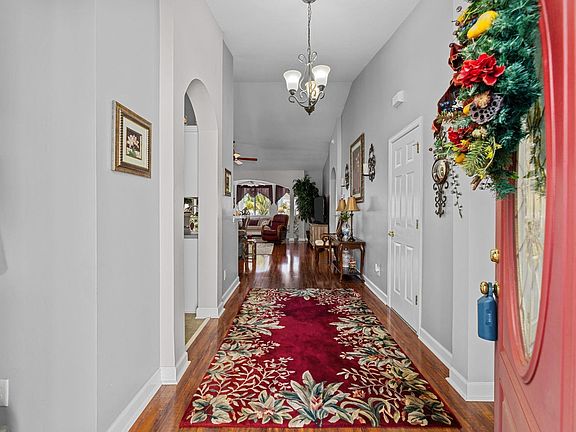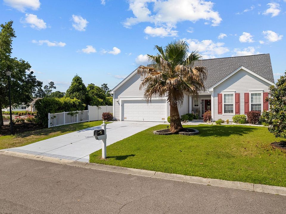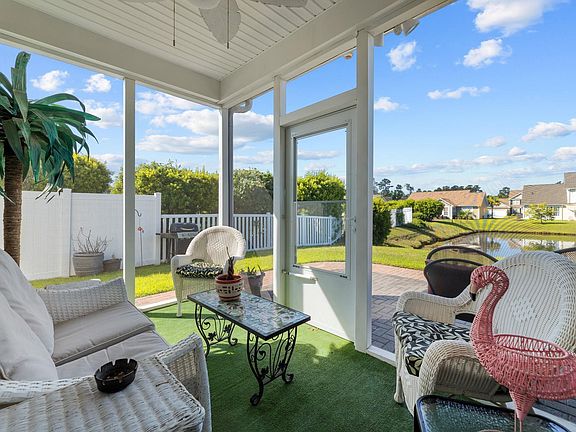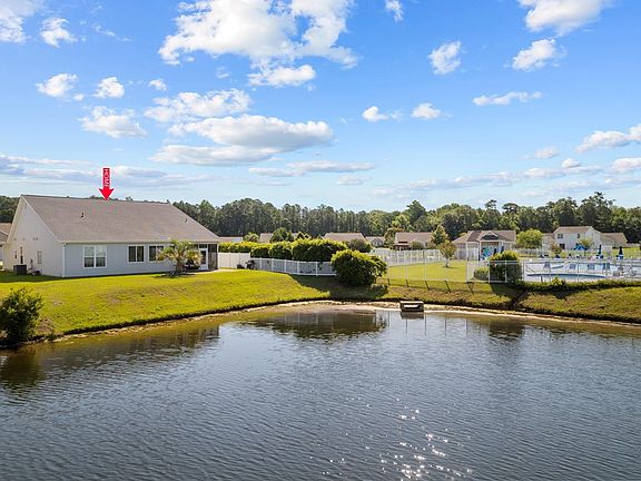 Wow - what a beautiful home just waiting for you! 196 Zinnia Drive is a SINGLE-LEVEL 3 bedroom / 2.5 bath home on a corner lot overlooking the LAKE and right next door to the amenity center and community pool (yet, the nice hedge line on the left side of the yard blocks the view of the amenity center/pool). It's like having your own pool without having to maintain it yourself - what could be better??!! This gorgeous home has tons of features including: Open floor plan * Cathedral ceiling in main living area * Arched doorways * 5" wood laminate flooring in the foyer, living room, Carolina Room, dining room, and hallways * Carpet in the 3 bedrooms only * Ceiling fans in all 3 BR's, living room, Carolina Room, and the rear screened porch * Smooth textured ("orange peel") ceilings throughout * Laundry room with front-load washer / dryer with raised pedestals * Oversized 2-car garage with a painted floor and pull-down stairs to the storage area above the garage * Large Dining Room with plenty of room for an 8-12 person table, plus a buffet and a china cabinet * Carolina Room with large picture windows, and a rear screened porch, both overlooking the water * Open kitchen featuring: Bar counter, center island, white raised-panel cabinets with nickel knobs, smooth-top stove, built-in microwave, dishwasher, stainless steel refrigerator, pantry, and a breakfast nook * Large primary suite with en-suite bathroom * Primary bathroom has double-bowl sinks with marble sink-top, garden tub, separate shower, water closet, and a walk-in closet * Guest bathroom with a tub/shower combo and marble sink-top * NEW ROOF installed on 3/10/22 * HVAC is approx. 1-2 years of age * Hot Water Heater is newer but seller is unsure of age * Sprinkler system for the yard * Beautifully landscaped yard highlighted with flower beds with white rocks, magnolia, AND Palm Trees (in front and back yard). Some furnishings are available for purchase as well. Fences ARE allowed in the back yard as well (with HOA approval). 196 Zinnia Drive is an amazing home with all of the bells-and-whistles you'd hoped for, low HOA dues, a beautiful community you'll be proud to call "Home", and centrally located to everything the area has to offer.