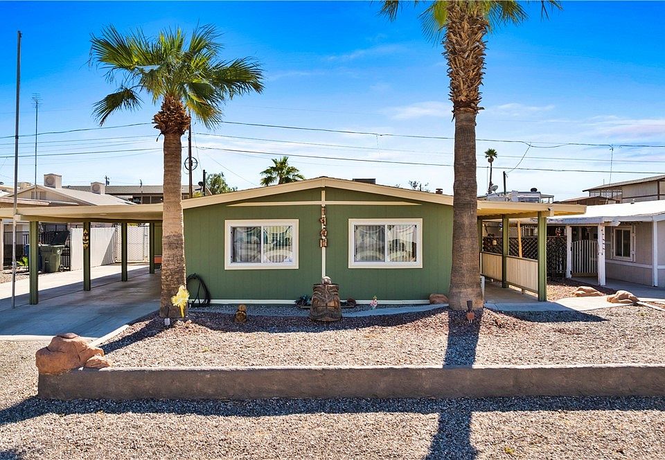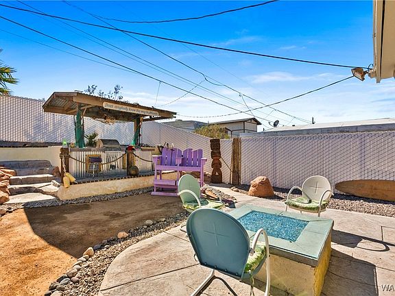 Welcome to The TIKI HOUSE! Here is an opportunity to own your own piece of paradise! The perfect River house, vacation home, family retreat, or retirement home. This home offers: 3 bedrooms, 2 bathrooms, covered side parking, a large shed for your toys easily fit a side by side or jet skis, double gate opening to back yard parking. Get ready for an entertainers dream back yard. With a beautiful water feature, propane built in fire pit, out door built in BBQ, out door shower, surround sound, and so much more. This home CAN comes fully FURNISHED!! Other features you will find: Open concept, spilt floor plan, updated open kitchen, breakfast bar, indoor laundry room, 6 Year old roof, AC about 4 years old, also a mini split to keep the house extra cool. Located close to all, local amenities, restaurants and casinos. Just minutes from the Local Launch Ramp and close to Lake Mohave- THIS HOME IS A MUST SEE!!