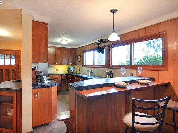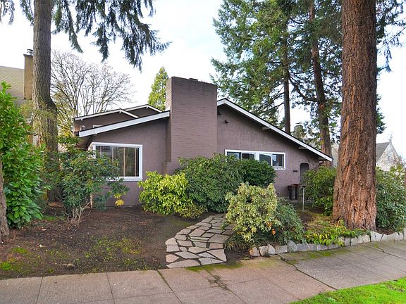 Mid-Century Modern Home on College Hill with Views! Main-level master suite with walk-in closet and walk-in shower. Kitchen with stainless steel appliances and breakfast bar. Dining room with wood-burning fireplace. Versatile upper-level has vaulted family room, contemporary kitchen, office and half bath- potential for separate living. Backyard with tiered deck, pergola and garden beds. Minutes from Washington Park, U of O and Downtown!