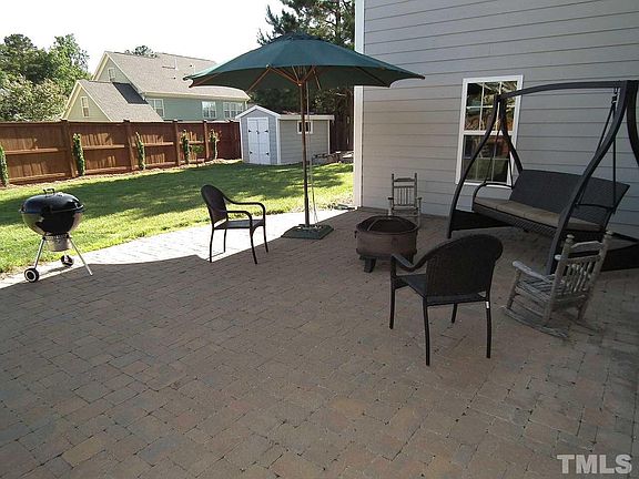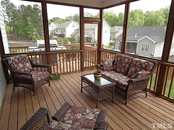 Open floor plan in a friendly & desirable neighborhood! Tons of expansion & storage w/full unfinished daylight basement & walk-up attic (both plumbed for baths!) Screened porch, deck, large partially covered patio & fenced yard! Kitchen w/gas range, double ovens, built-in microwave & island w/breakfast bar! Big 1st flr Master w/Jacuzzi tub, sep shower & large walk-in closet. Enormous Bonus Room, new paint & irrigation system. Community pool, close to I-540 & Jordan Lake! Expand to over 6,500 square feet!