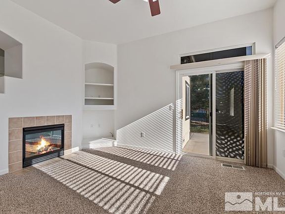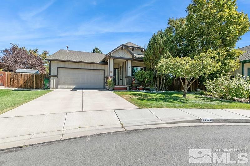 Single Level NW Reno Home This one is just right, perfectly located on a cul-de-sac. The front porch leads you in to an inviting entry way. Step to the right and you are greeted by the spacious kitchen with an island and room for a breakfast table too! Then on in to the sunny great room with a fireplace and a slider to the back patio., Down the hall you find the large primary bedroom with a walk-in closet and bathroom with dual sinks.There is a slider to the back from here as well.The secondary bedrooms are nicely sized and the hall bath is just steps away. There is a laundry room with cabinets for convenience and storage. The back yard is lovely with open space to the rear. This location is so convenient to shopping, schools and commuting.