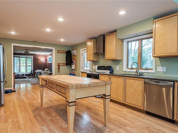 This beautiful home sits almost half acre lot that is just lined with trees for privacy ideal for large gatherings or sitting out back watching birds and deer walk on by. Inside youâll find a GORGEOUS kitchen that would any COOKâS DREAM with views of Most every room on the first floor. The first floor also features a breathtaking living room with cathedral ceilings, pellet stove and picture windows looking into the beautiful back yard. Two bedrooms, updated full bath and large family room with direct view of the glamorous kitchen along with first floor laundry. Upstairs youâll find a bedroom master bedroom with updated master bathroom with beautiful views downstairs.
