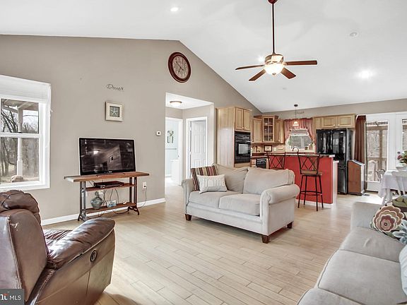 Charming Rancher. Property just shy of 5 acres with stunning views. Cathedral Ceiling, Kitchen, 2 Bedrooms with Full Bath and Laundry on Main Floor. Finished Basement offers 2nd Kitchen, Great Room with wood-burning stove, Bedroom, Full Bath and 2nd Laundry space. Walk-Out Entrance from basement has a pathway to the driveway. The 450 ft of of road footage offers opportunity to subdivide property. Garage could be added to this property. Horses, Goats, Chickens are welcome. Shed-like structure provides shade for animals and there is even a Live Spring (with Well House-found at rear of property) as a constant source of water - perfect for animals. Brand New Well Pump installed August, 2020. Property is being sold "as-is".