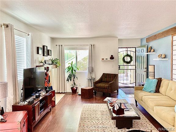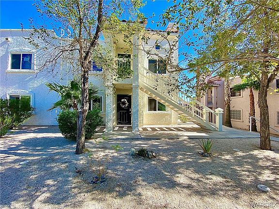 Beautiful Las Palmas Condominium for sale! Enjoy stunning sunsets from this west facing ground floor, secluded end of complex unit Updated in the last two years including beautiful laminate & tiled floors, Milgard dual pane gas filled windows with window screens, steel security screen door, 2" white faux wood blinds, vertical blinds over sliding door to main patio, ceiling fans & lighting, bathroom & kitchen lighting fixtures & cabinet hardware, new toilets, newer dishwasher, garbage disposal & stainless steel sink, electrical outlets, stackable washer/dryer, electric water heater, exterior underground french drainage system. This originally was a 3 bedroom 2 bath unit where the 3rd bedroom has now been converted into a den/office with built in desk area. This is a rare find on the ground level. No stairs, easy access. Enjoy desirable Las Palmas complete with clubhouse, spa, pool , bbq and sitting areas. This all in a secure gated community. HOA includes water, trash, sewer. No maintenance to worry about, Just come and enjoy our sunshine and all the casino and outdoor fun that Laughlin has to offer.