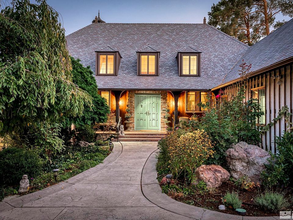 The Hirsh home is one of Reno's architectural masterpieces. This geothermal gem was designed specifically to match the dramatic hillside setting overlooking Lakeridge Golf Course and the south Truckee Meadows beyond. As you enter through the double door entry, you are pulled immediately through the light and elegant foyer to the beamed and vaulted great room and the breathtaking views beyond., Anyone looking for something absolutely extraordinary has to view this elegant and timeless home. As you walk from the foyer to the great room, the floor transitions from the antique ground tile to the hand-tooled walnut planking that is featured throughout the home. The great room is quite large, yet not overwhelming. Rather, you are embraced with the intimate friendliness that the room offers. All masterfully designed homes have an architectural centerpiece. The large beautiful fireplace with its intimate seating area is this home's focus. A picture may be worth a thousand words, but a picture cannot convey the feeling this room gives to its owner. If you had been among the many Renoites who attended a gathering in this beautiful home, after socializing for a time in the great room, the double doors would open to reveal the stunning dining room replete with domed ceiling. This incredible room can seat a formal dinner for forty, or an intimate dinner for two. Why the domed ceiling? Modern architects are rarely given the budget for such a useful extravagance. Put forty partygoers in this amazing room, and no-one has to raise their voice to be heard. Place two people in the same room and there is no feeling of emptiness or echo. Truly amazing! The adjacent kitchen is truly well thought out. It can be open to the dining room and great room for informal gatherings and everyday use, or artfully hidden by three sets of double doors with piano hinges for a more formal feel. The kitchen itself is designed to be used and enjoyed. The vaulted and beamed ceiling motif is carried into the kitchen to reinforce the country French elegance. Time has not passed this kitchen by, it has been artfully updated several times and includes separate Sub Zero refrigerator and freezer. The six burner Viking Commercial cooktop can handle any job, as can the large Thermador convection oven. There are two sinks perfectly located for prepping and cleaning. Of course the hand-tooled walnut floors are present in this room as well. Tired of pulling your special sets of china out of hard to reach cabinets? No longer. The kitchen and butler's pantry has shelving and pull outs to handle anyone's collection of fine china and specialty cookware. There are even special appliance hiding places, grocery pass throughs, and seven foot drawers to handle table cloths and other large flat items. No country French kitchen is complete without a breakfast room or day room. This elegant little room looks out over the beautiful view and perfectly completes this design. The party is over and you are ready to retire to the master suite. Two ensuite bathrooms, his and hers, are tastefully appointed with Sherle Wagner faucets and hand painted ceramic sinks. Both bathroom areas have huge amounts of storage and closet space. Her bath features full length and half length three way mirrors, a large soaking tub, bidet, and huge walk in closet. His bath features warm contemporary paneled closet doors and an oversized multi head shower. The design and proportions of this home are truly extraordinary. The master bedroom seems just right for any configuration, and of course, the country French vaulted and beamed ceilings are present in this room also. The feeling in the room is soft and comfortable, and the painted beams add a wonderful soft contrast to the high ceiling. The private balcony is intimate and cozy and completes a perfect master suite. There are many other surprises that await if you truly desire to experience unparalleled elegance, quality, and extraordinary design. A few of the mode