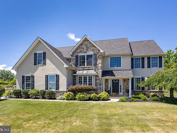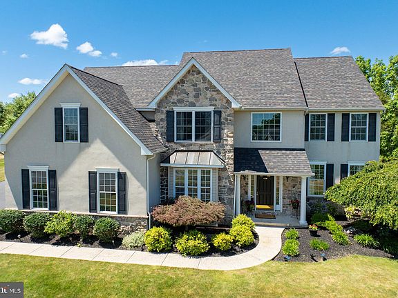 Welcome to 1960 Mary Lane! This stunning, move-in ready colonial home is situated in the desirable Vaughn Run community, within the sought after Souderton Area School District and offers over 4,000 square feet of living space. The home is nestled on a 1.22-acre lot at the end of a quiet cul-de-sac. The owners have meticulously maintained and lovingly cared for the home, and now it awaits its new owners. The home boasts 4 bedrooms, 2 full bathrooms, and 2 half bathrooms. The main level features both a formal living room and dining room with tray ceiling, perfect for entertainment. The gourmet, eat-in kitchen was remodeled (2023) and features a large center island, new gas range, as well as new double ovens. The kitchen flows seamlessly into the two-story family room with fireplace, as well as additional staircase to the upper level. Sliding glass doors lead onto a new, spacious patio and walkway (2023), overlooking the large, serene property, perfect for gatherings and entertainment. The main level also includes a study or home office. Completing the main level is a half bath, as well as a mud room, with laundry facilities consisting of newer washer and dryer. (2022) Ascending the curved staircase to the upper level, retreat to the owner’s suite with tray-ceiling, two walk-in closets, a lovely seating area, and a spacious, full bathroom, with updates (2023). Three additional bedrooms, with ample closet space, accompanied by a full bathroom with updates (2023), complete this level. Custom crown molding, doorway casing, and baseboards enhance the beauty of this entire home. The fully finished, custom basement offers additional living space, featuring a full bar, (with sink, dishwasher and wine cooler), a built-in aquarium, an additional half bathroom, as well as a home theater room. The property boasts fabulous curb appeal with a side-entry 2 car garage and extra wide driveway (seal coated 2024). Other features include new roof (2020), water heater (2017), chimney rebuild (2020), second floor heater (2021), and first floor heater (2023) Residents have access to a township walking trail in the neighborhood. Conveniently located near shopping, dining, schools, and easy access to the Northeast extension of the PA Turnpike, and other major routes. This home is part of a community with NO HOA. Schedule your appointment to see this lovely home! (Buyers to verify all room measurements)