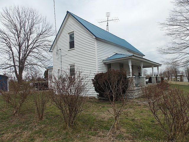 Older home with lots of landscaping. Home consists of 4 bedrooms, one down and three up, one bath, open kitchen-dining area, with the appliances remaining. Home has living room, country style front porch, and also an entry room off the back. It has almost all new windows, oak flooring, window air, and two nice propane heaters, city water and septic. In addition there is a nice oversized (26x26) two car garage with openers, plus a portable carport. Home sits in a quiet area.