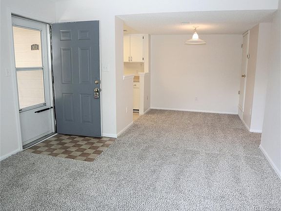 Come visit this newly updated home, there's much here to appreciate. The south facing patio brings natural light into the living and dining room areas. Mature evergreen trees out front provide some privacy and shade. Inside you'll find a functional floor plan. Highlights include new floor to ceiling interior paint in all rooms, new carpet, and a new bathroom vanity. The bedroom has a deep closet and new window blinds. There are 2 closets in the hall next to the stackable Whirlpool washer and dryer. All kitchen cabinets were just painted, and the microwave is brand new. HOA does include water, trash service, snow removal and exterior maintenance. The private entrance near the reserved parking space is covered overhead. It has a storm door to let in the fresh air and sunlight. Just above the parking lot you'll find walking and biking trail access. Located in the Cherry Creek school district. Highway access is nearby, along with hospital, and shopping as well. Light rail station is 1.4 miles away. This community is very close to Heather Ridge Golf Course.