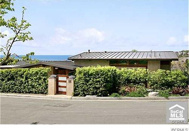 Beyond the private gate and Zen-like courtyard lies this soft contemporary home offering stunning ocean, Main Beach, Catalina, and coastline views from nearly every room. The residence spans almost 3,600 sq. ft. of indoor living space, with an additional 2,000 square feet of ocean view decks and limestone covered lanai space. The outdoor living area has a water feature, gas fire pit, and cook island with refrigerator. Perfect for entertaining, the open floor plan flows naturally from indoor to outdoor spaces on both sides of the home. The kitchen has been outfitted with a professional gas range and granite counters opening to the great room. The lower level is comprised of an expansive master suite, sitting area and office allowing commanding ocean views as well. A second master suite and two more bedrooms are on the upper level. Quality finishes were employed inside and out including, a recently installed metal roof and high-end doors and windows . The parcel is sited on a very quiet street at the corner of a small cul-de-sac providing garage entrance on the side with plenty of on and off street parking. The entire property feels like a peaceful and private refuge and is enhanced by the grassy back yard landscaped with mature fruit trees and bamboo.