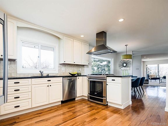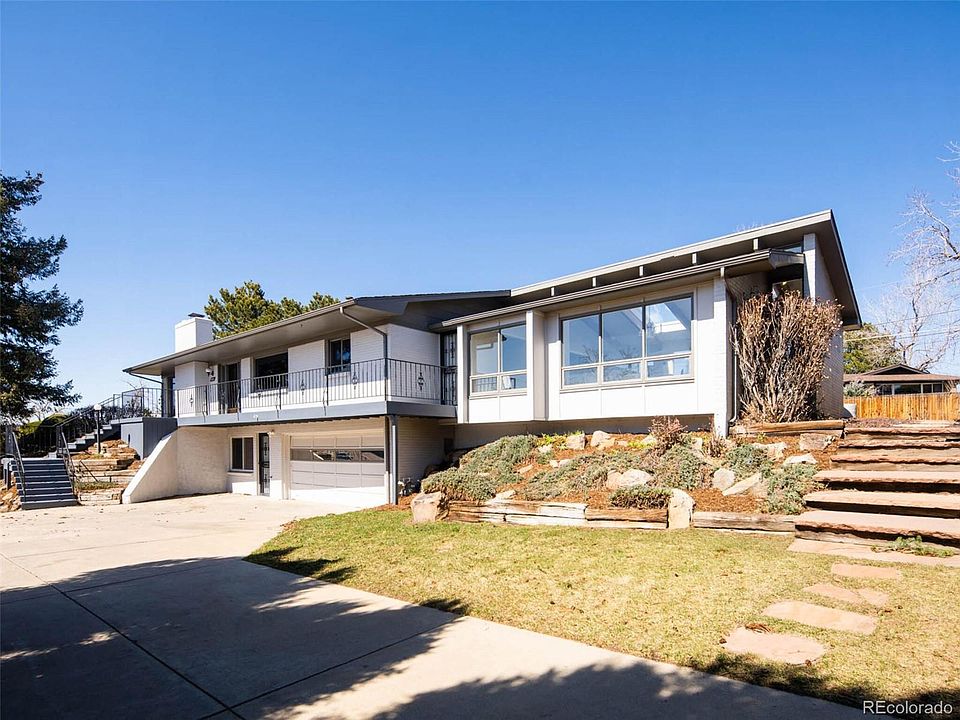 Perched on nearly half an acre surrounded by manicured landscaping, mature trees, and expansive mountain views, this impressive home offers modern updates and spacious privacy in the heart of Applewood. Fresh renovations and sleek refinement seamlessly balance this home's timeless mid-century modern charm and architectural integrity. Southern-facing windows allow natural light to pour into the home, perfectly accentuated by airy ceilings, resulting in a wonderful flow through the living room, dining room, kitchen, and spacious sunroom on the main level. Take in the mountain views from your chef’s kitchen complete with an open flow and generous counter space. Made to enjoy the home’s outdoor spaces, each gathering space effortlessly connects to the nearly 900 square feet of deck and patio space, perfect for alfresco dining and entertaining. Four, spacious bedrooms create ample space for hosting guests and plenty of additional storage. A large office with french doors creates the perfect working environment overlooking the light-filled sunroom. The finished lower level boasts a sprawling recreation room, private study, walk-out access, and connectivity to the attached garage. Located in a private cove in Applewood, this highly sought-after locale is just minutes from Table Mountain and the Clear Creek trail system, with convenient accessibility to I-70 and downtown.
